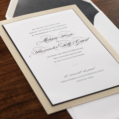 I absolutely love Adriana's wedding colors - Black and Red. She chose a layered flatcard and we accented it with some bling. This is a very simple, yet classically elegant invitation. Adriana & Alfredo were married in December 2012 at the gorgeous Bell Tower on 34th in Houston, Texas.